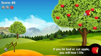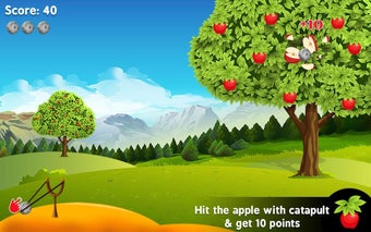 Apple shooter is een spel waarbij je met een katapult de appels aan de boom moet schieten en neerhalen. Gebruik de katapult om op de appels te richten. Als je de appels raakt, krijg je een score en kun je de appels omverwerpen, alleen door het doelwit te raken. Apple shooter is een leuk nieuw katapultspel.